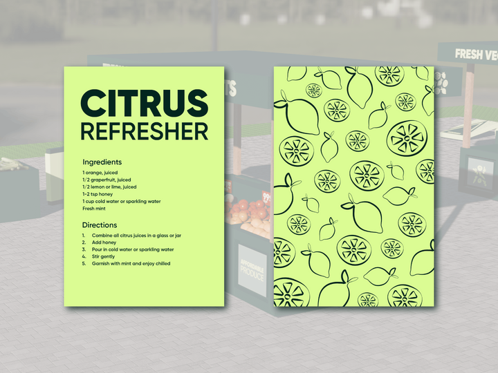 Nourish is a pop-up market designed for college campuses, giving students convenient access to fresh, affordable produce. It offers budget friendly additions to a student’s diet without compromising on quality. The design is intentionally student focused and aims to encourage students to stop by and discover healthy food options.